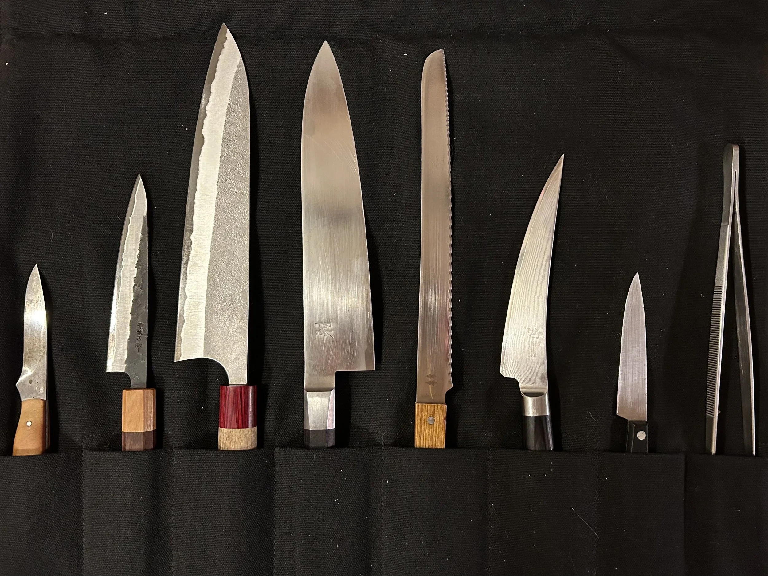 First and foremost in this two part series, of said key invaluable assets, is my cherished knife roll. So much so that I put an air tag in it when I fly. It does put a bit of a damper on travel, always having to check a bag but it’s a small price to pay to bring my babies with me.